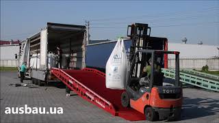 Utovarne rampe za kamione AUSBAU od proizvođača. Velika zona nagiba, protivoproklizavajuća površina, podešavanje visine (od 900 do 1650 mm). Štedi Vaše vrijeme i novac pri utovaru-istovaru razne robe. Standardni modeli nosivosti 6, 8, 10, 12t. U našem poduzeću mogu biti izrađene mobilne utovarne rampe bilo kojih dimenzija po narudžbi. Više informacija o proizvodu utovarna rampa za kamion AUSBAU na našem sajtu av-exim.com id: EdGixU